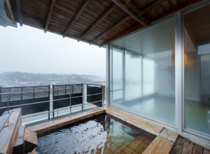 温泉はお肌をすべすべにするサラリとした肌触りで、湯あたりしにくいアルカリ性単純温泉です。三隈川と日田盆地の連なる山並みを正面に臨むことができる露天風呂を設えた展望大浴場と三隈川の穏やかな流れで目を喜ばせながらくつろげる檜の露天風呂の2種類がございます。