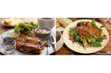※グループ毎に「①長州炙りチキンステーキ」または「②地産ハーブの香る長州チキンステーキ」のいずれかをお選びいただけます。