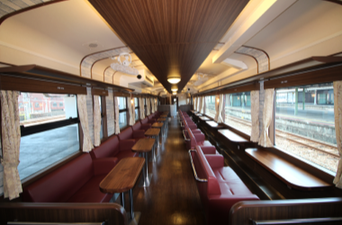 萩(はぎ)・長門(ながと)・下関(しものせき)は、日本と西洋をひき合わせるきっかけとなった歴史が息づくところ。美しい海岸線とともに、思い出に残る「はなし」の旅を楽しんでほしいとの思いが列車名に込められています。車内は、「西洋にあこがれた日本(洋)、西洋にあこがれる日本(和)」をコンセプトにデザインされています。外装には「洋と和をつないだ海」が2両にまたがり、萩の「夏みかんの花」と山陰の海岸沿いに咲く「ハマユウ」が各所にあしらわれています。