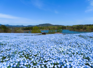 敷地に70万本ものネモフィラが咲き誇ります。