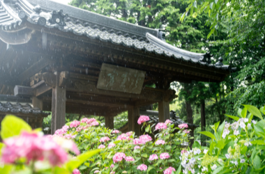 紫陽花寺とも呼ばれるほど紫陽花の名所で約3000株のあじさいが出迎えてくれます。油谷湾が望める山腹にあるので天気が良い日にはあじさいと青い海の美しいコラボレーションを見ることもできます。